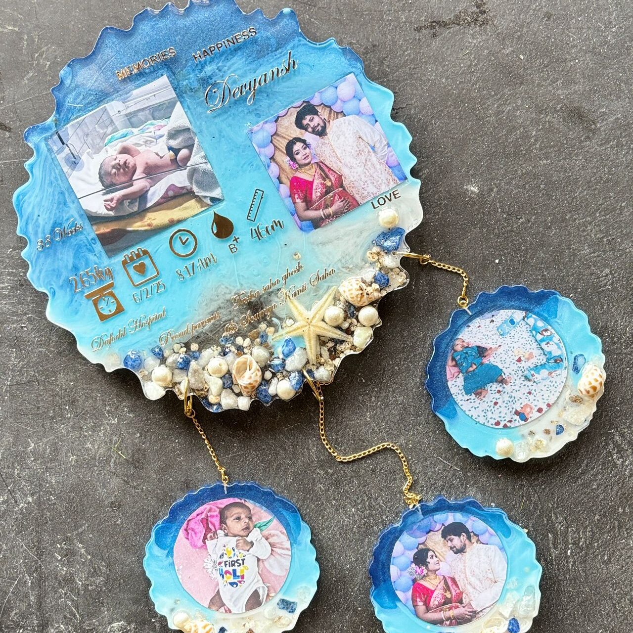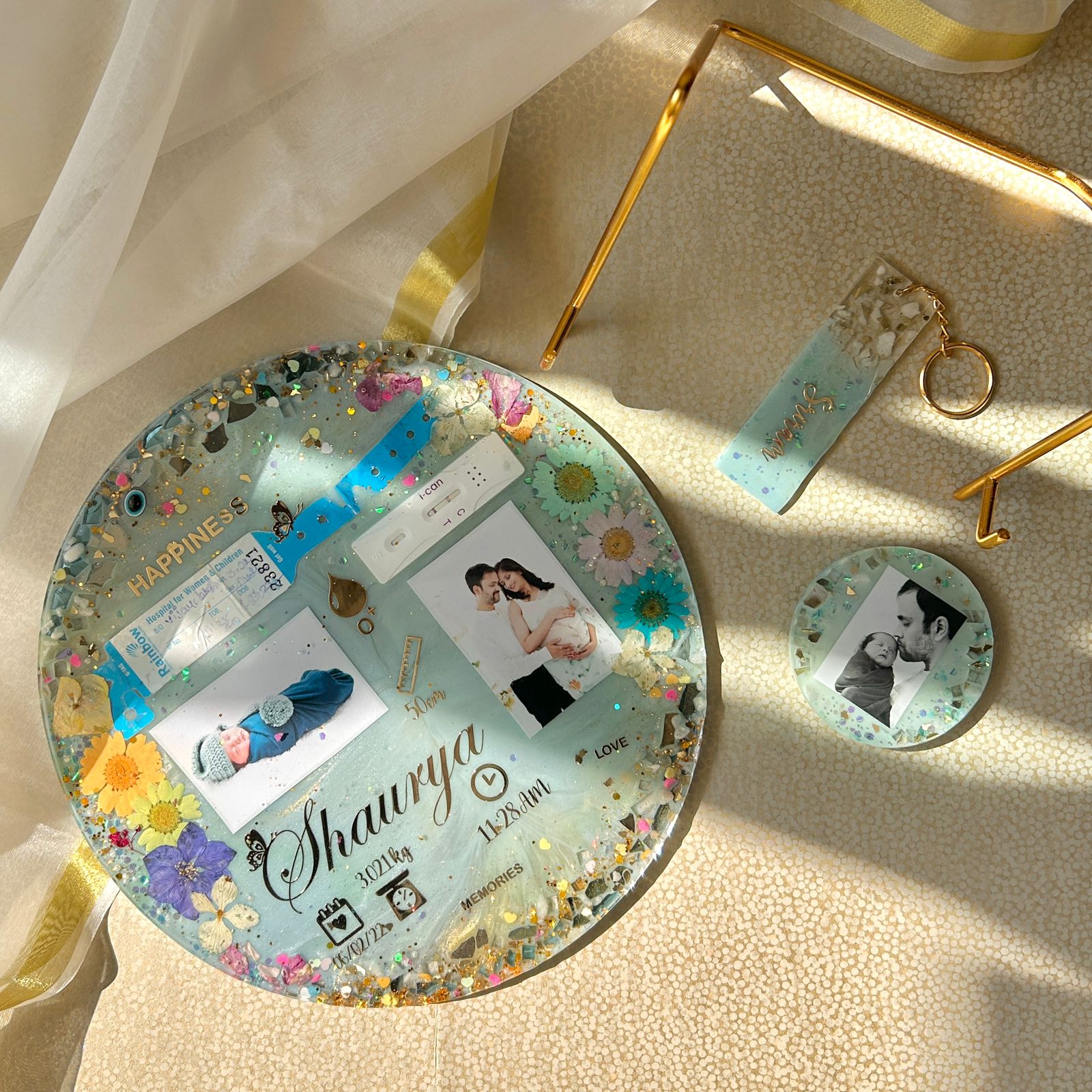 Tray and coasters that turn wedding memories into everyday elegance.