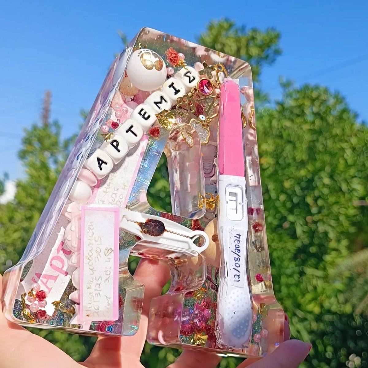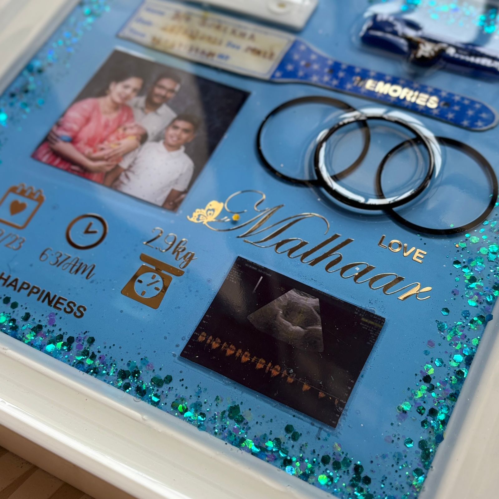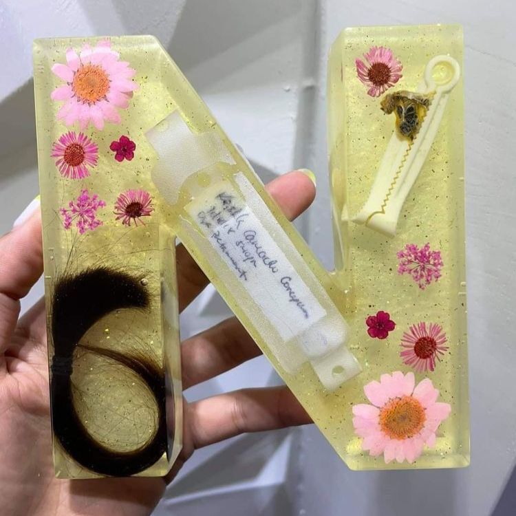 Hold your wedding memories close in an elegant shadow box made with resin alphabets.