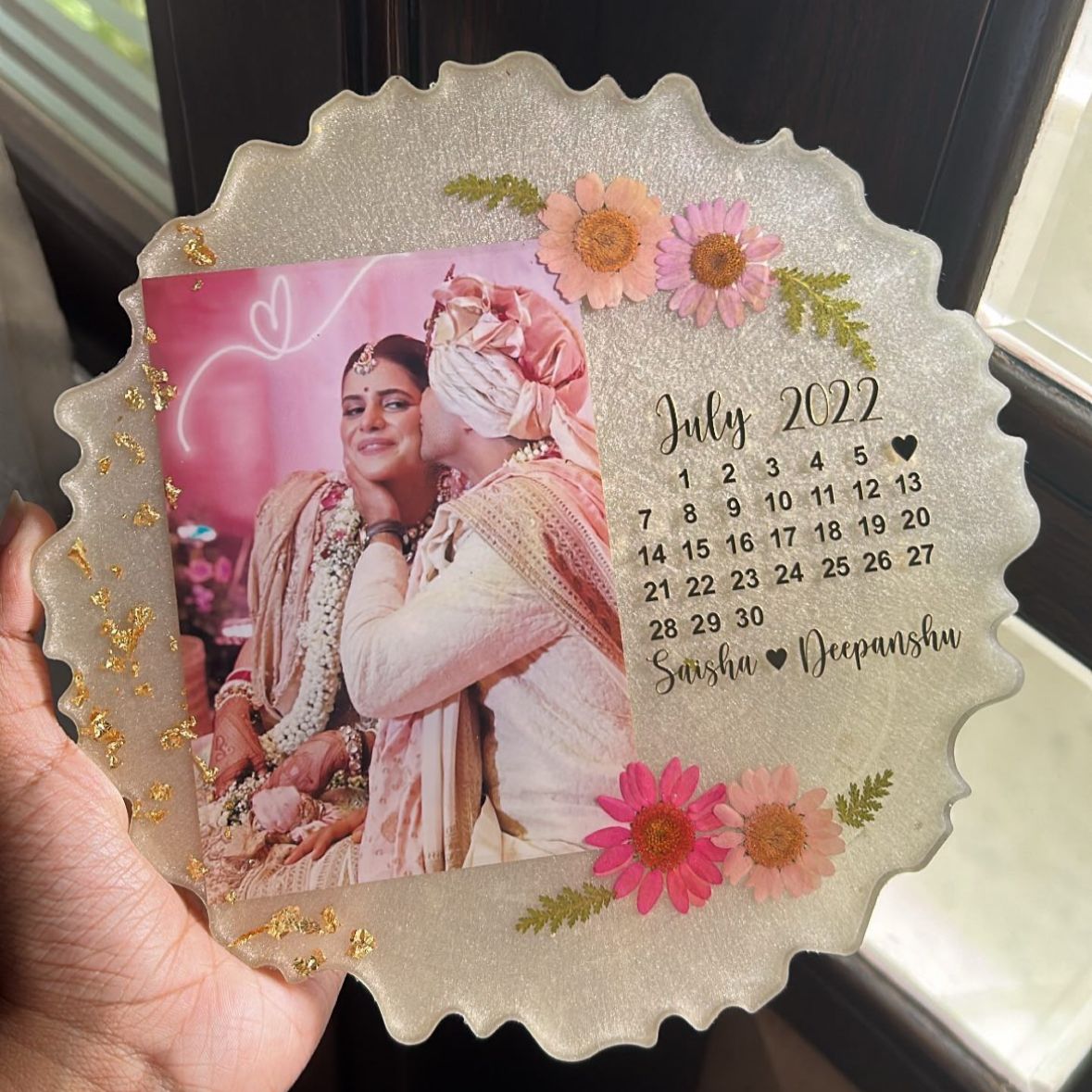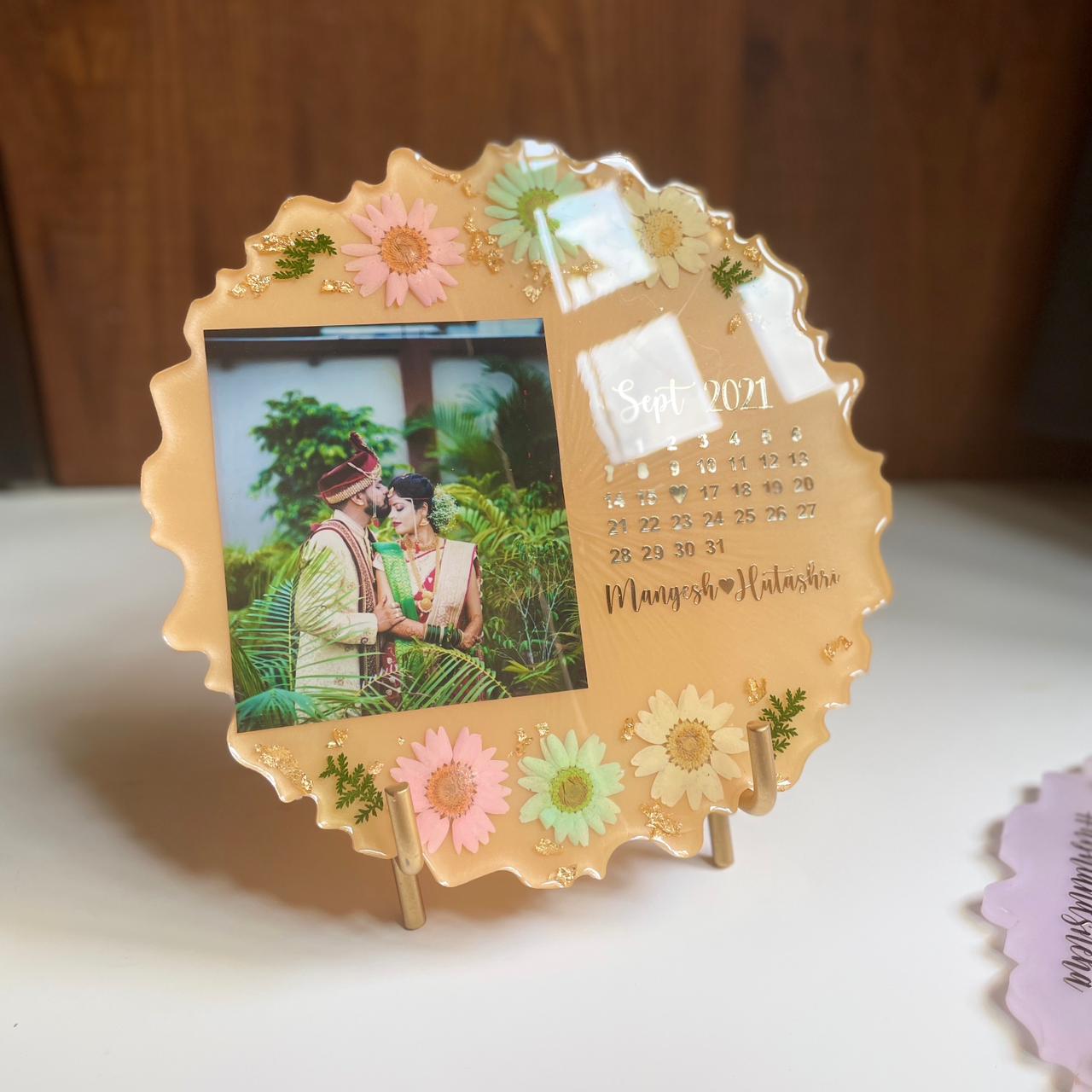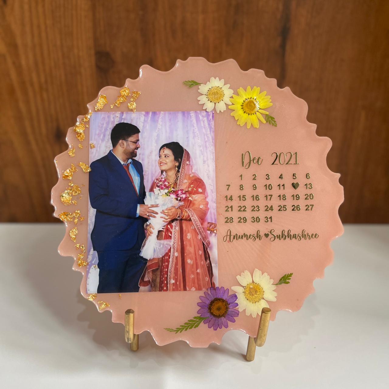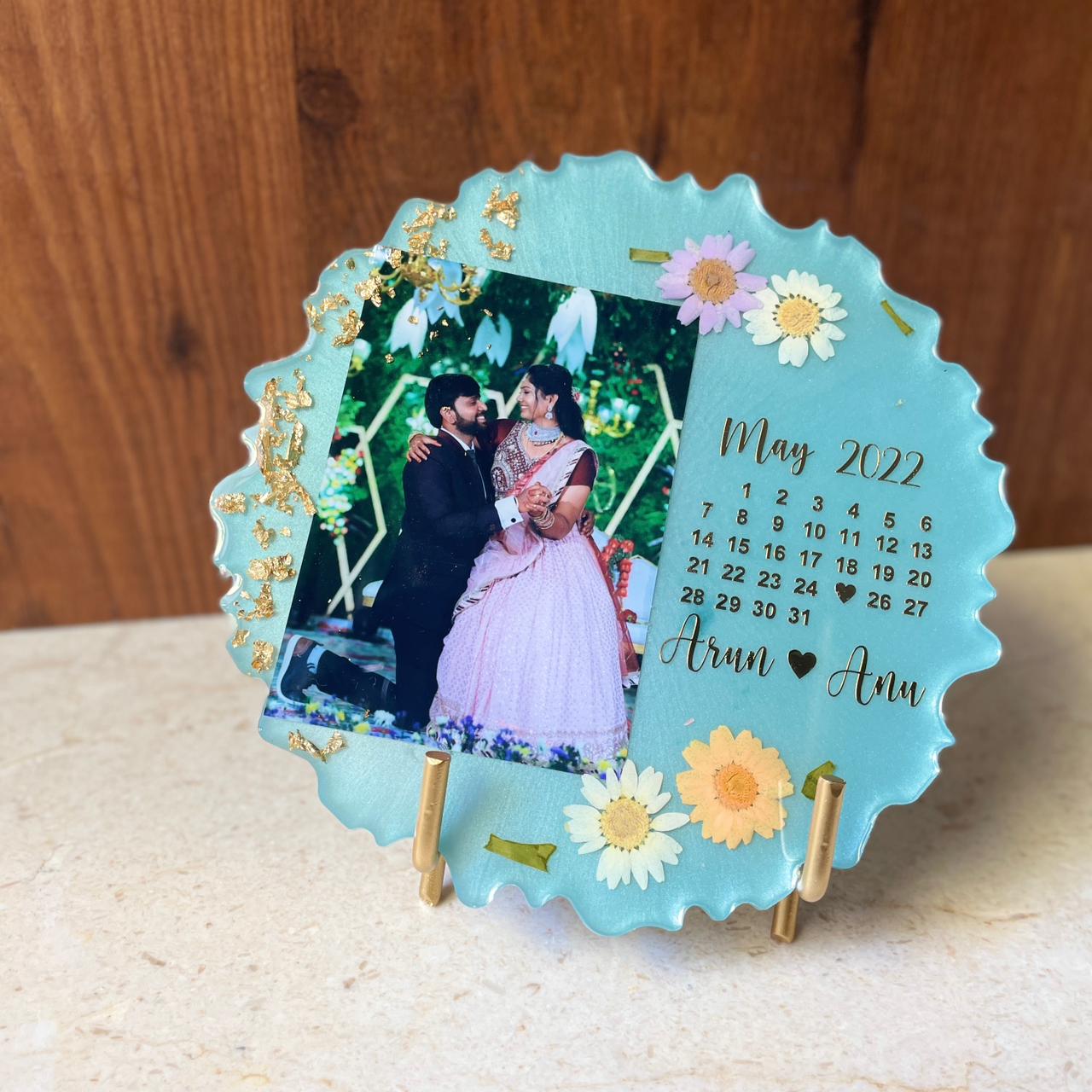 Capture your most cherished moments in a frame as beautiful as the memory itself. This handcrafted resin picture frame features your chosen image and customised text, making it a truly one-of-a-kind keepsake. Delicately embedded within the resin are real preserved flowers, adding a touch of natural elegance and timeless charm.