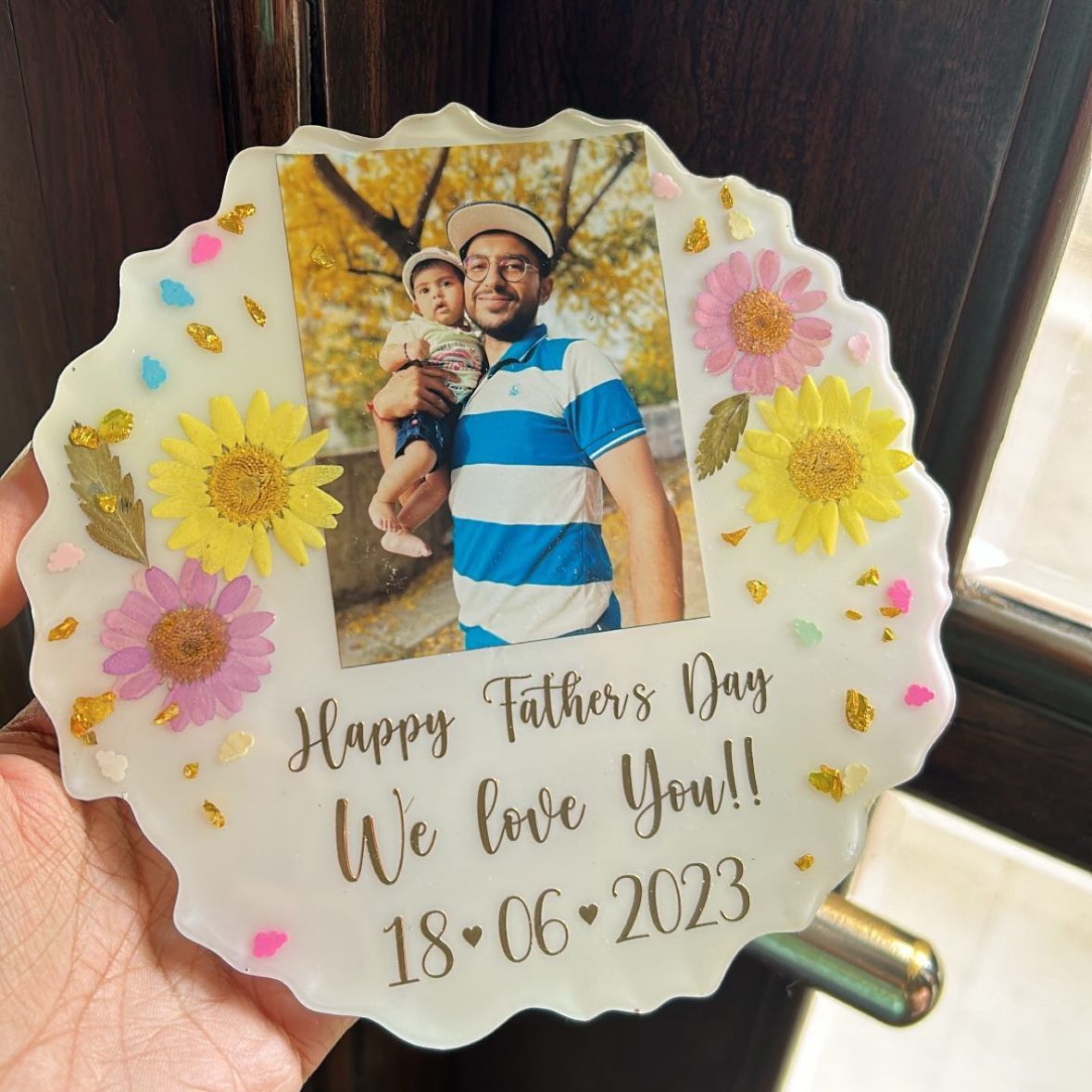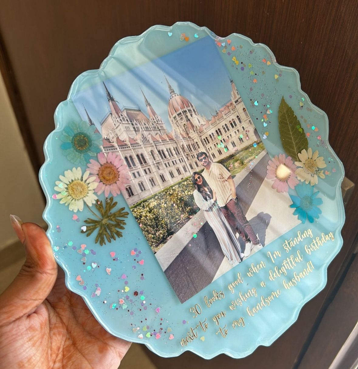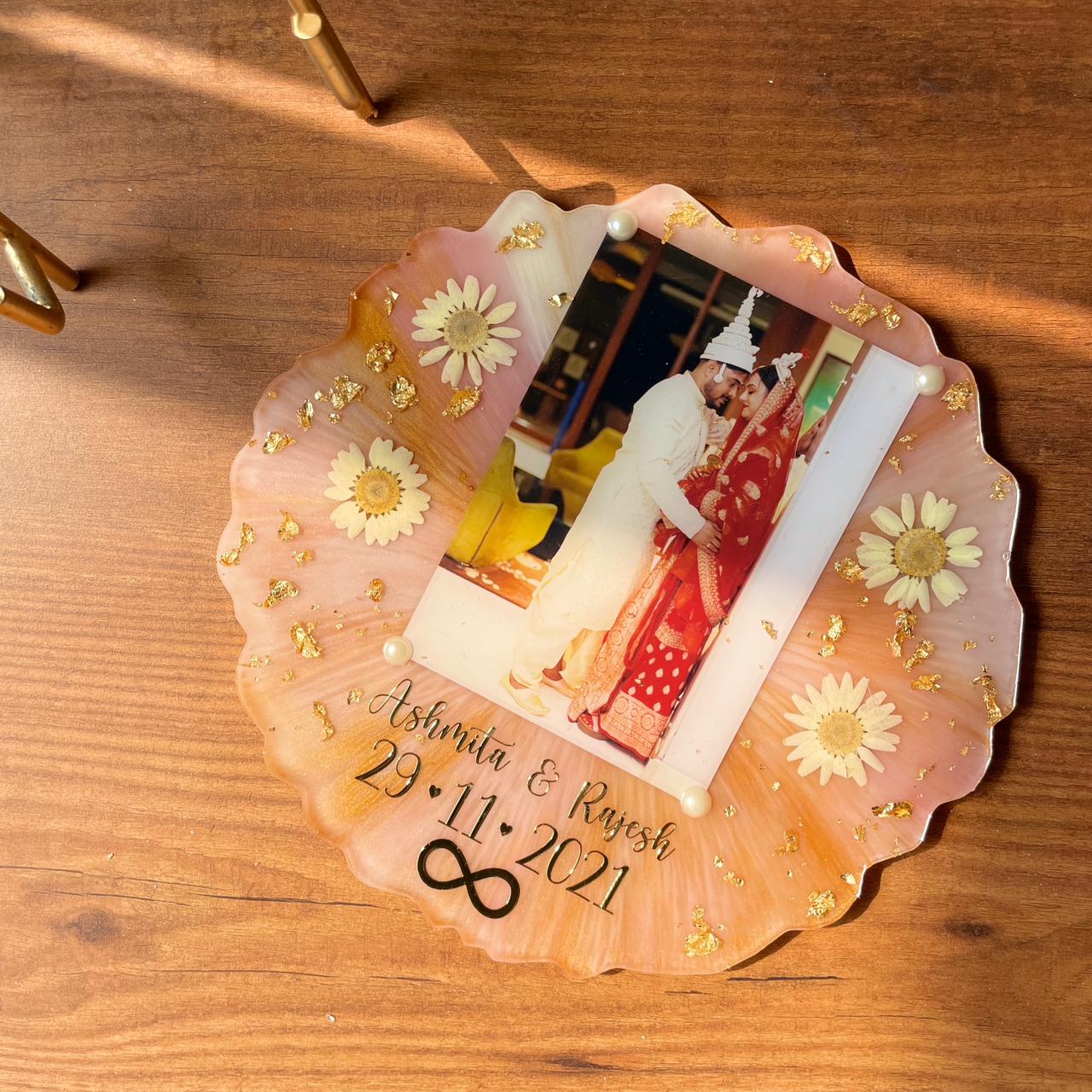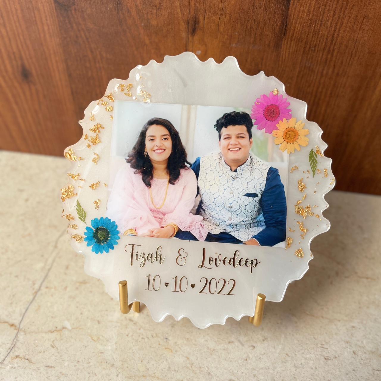 Capture your most cherished moments in a frame as beautiful as the memory itself. This handcrafted resin picture frame features your chosen image and customised text, making it a truly one-of-a-kind keepsake. Delicately embedded within the resin are real preserved flowers, adding a touch of natural elegance and timeless charm.