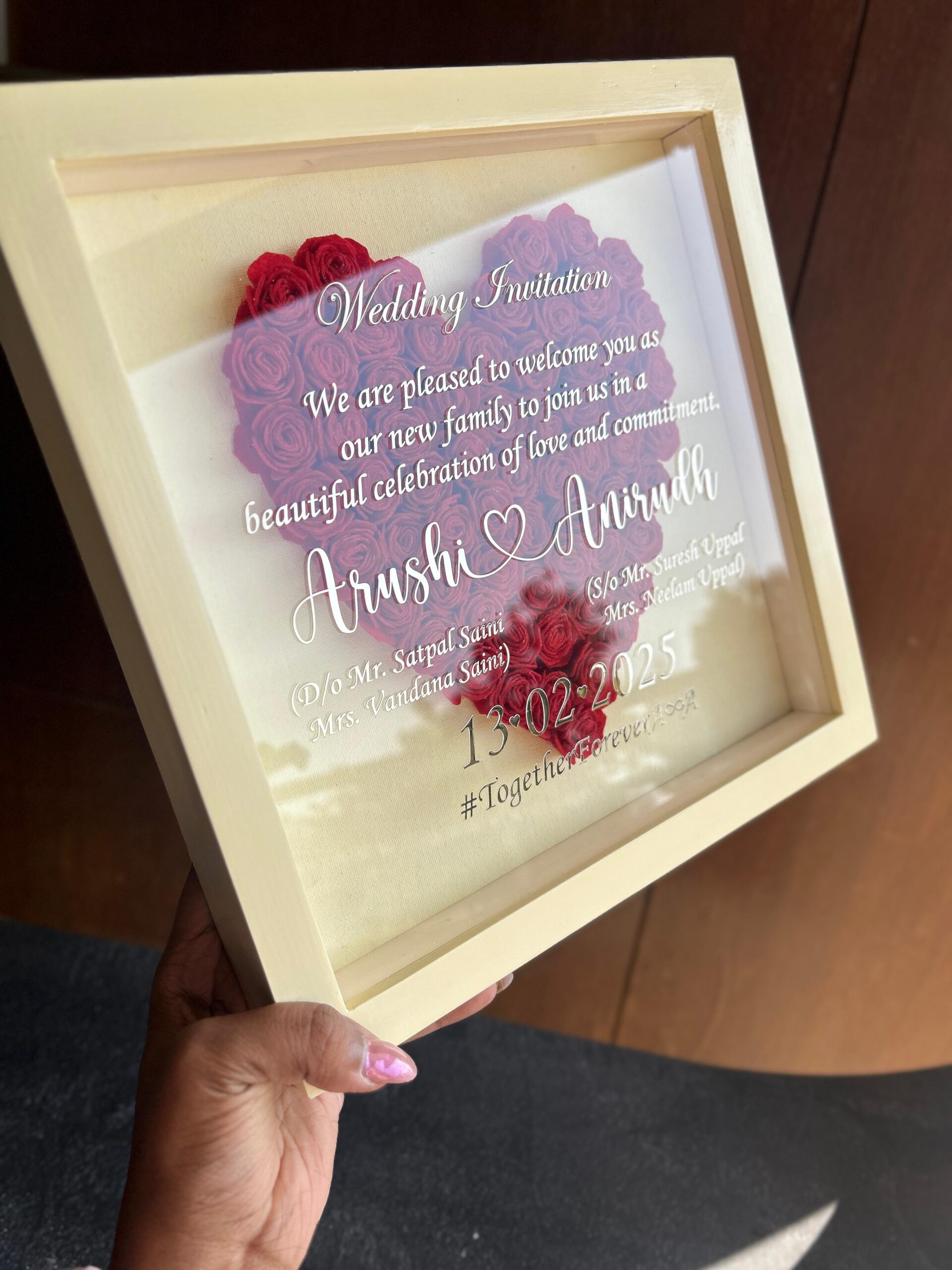 Forever Rose Frame – A timeless keepsake crafted with premium fabric flowers that never wilt. This elegant frame captures the beauty of everlasting blooms, making it a perfect gift or decor piece to cherish forever.